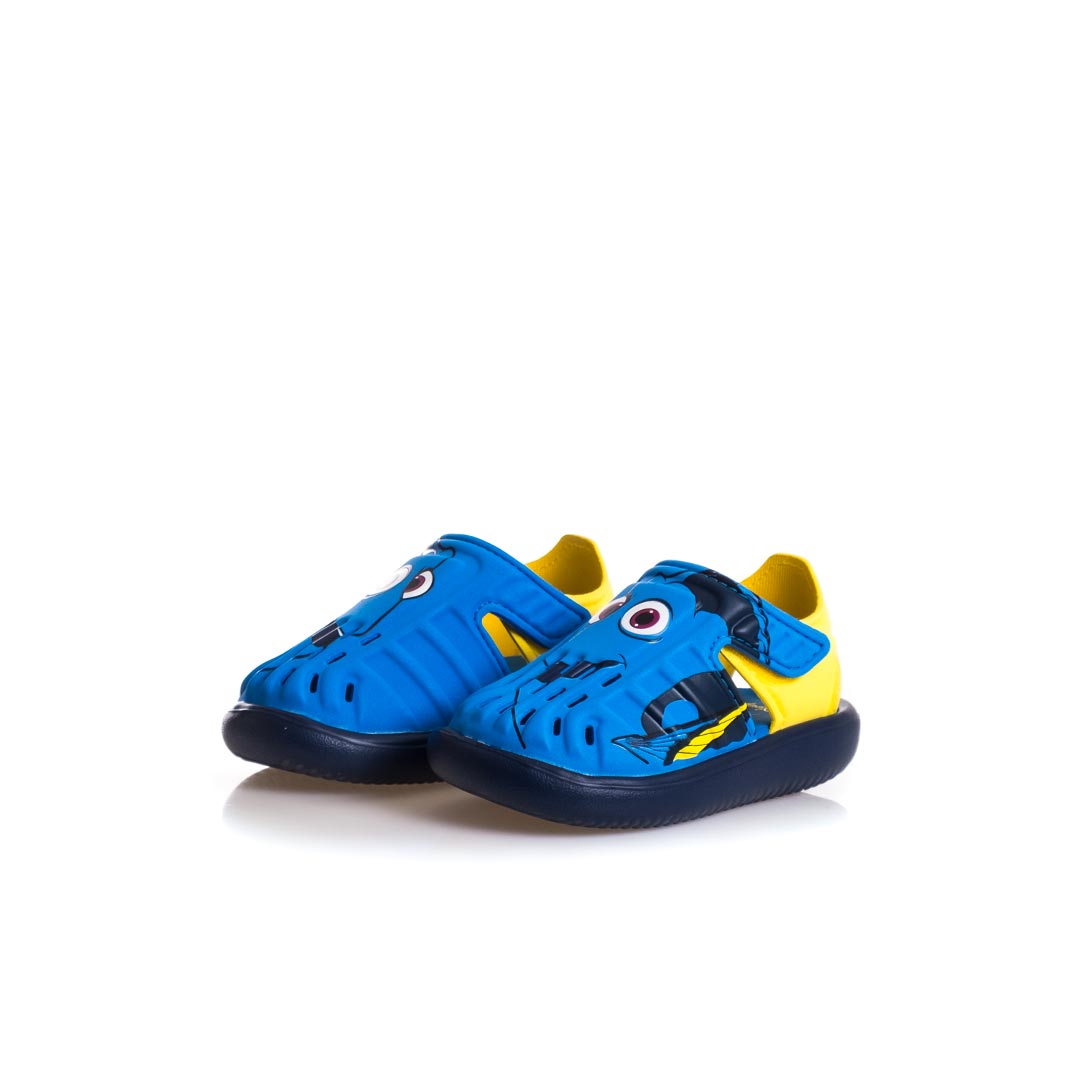 Questi sandali infant sono ispirati al film Disney “Alla ricerca di Nemo”. La punta chiusa assicura comfort e protezione, mentre il plantare sagomato e la suola in EVA offrono un’ammortizzazione ottimale. Le chiusure a strappo garantiscono massima praticità.