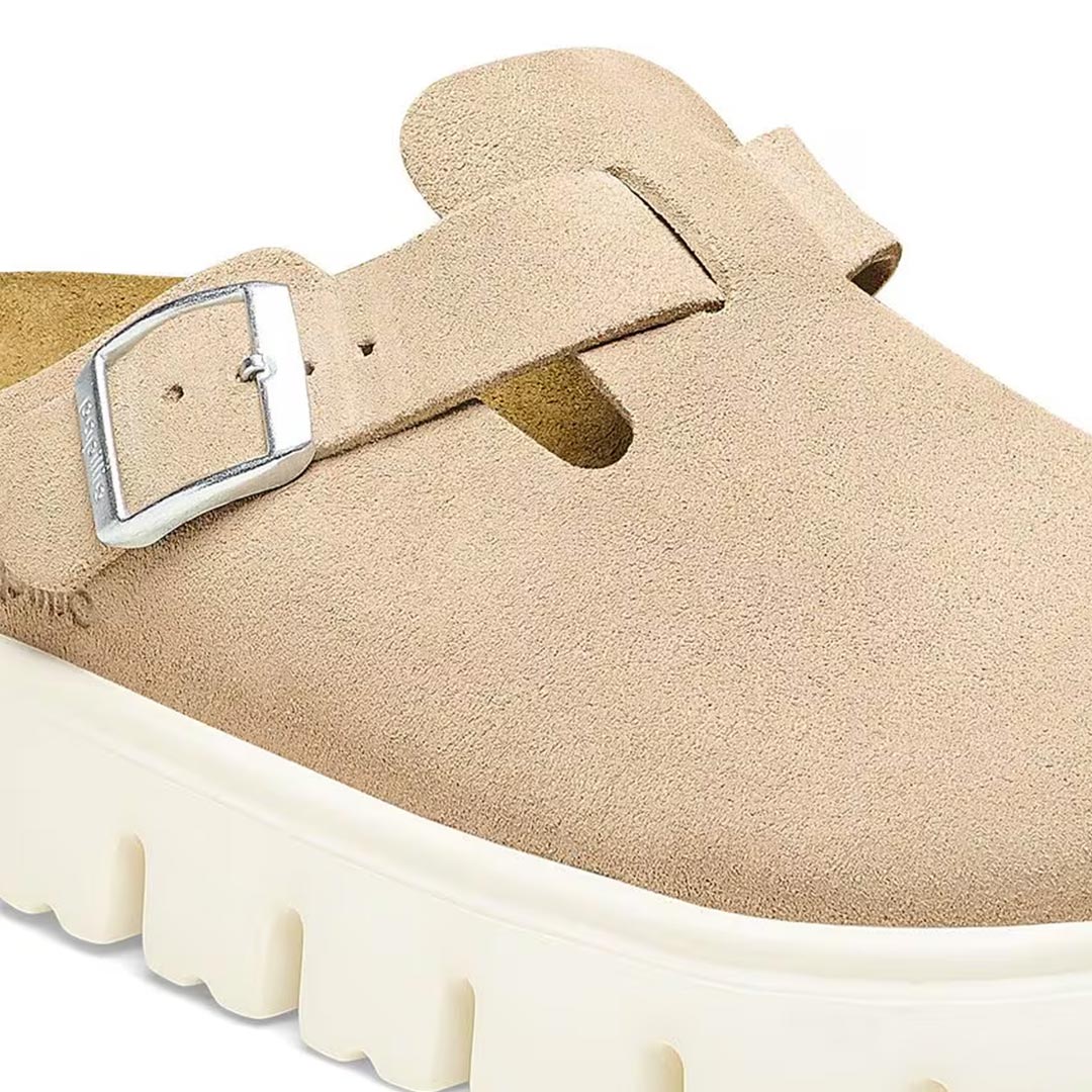I sabot BIRKENSTOCK Boston sono un vero classico da indossare facilmente durante tutto l’anno. Qui Papillio presenta questo sabot con un plateau stiloso e una suola con scanalature estremamente profonde. Grazie alla smussatura, la comodità di indosso è garantita. La tomaia è composta da pelle scamosciata particolarmente morbida, che aderisce al piede come una seconda pelle.
