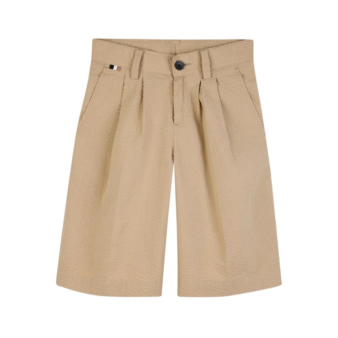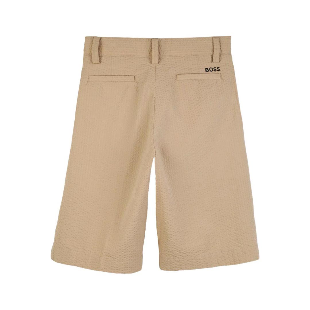 Realizzati in tessuto elasticizzato con trama piqué sportiva, questi bermuda BOSS Bambini presentano uno stile cargo per look casual classici.