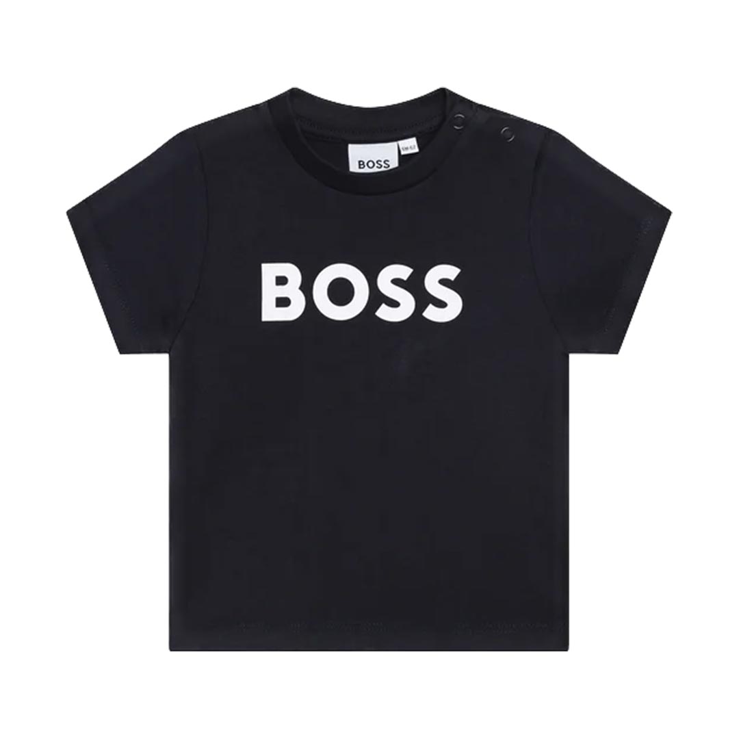 Una T-shirt regular fit per bambini BOSS realizzata in jersey di cotone con logo a contrasto sul petto per uno stile autentico.