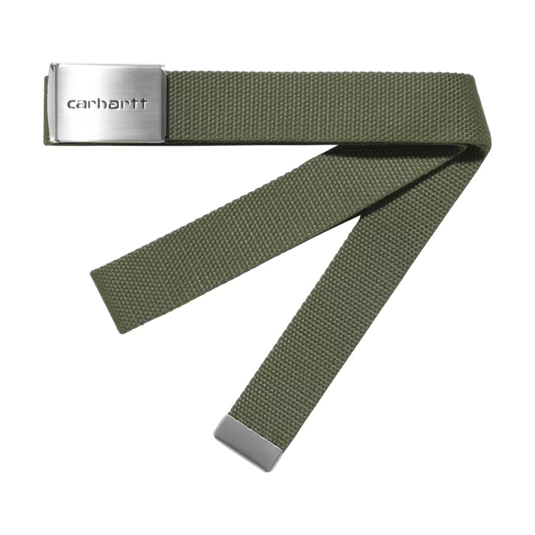 La Clip Belt Chrome è realizzata in resistente canvas di poliestere e presenta una fibbia a clip di metallo intercambiabile con marchio Carhartt WIP fustellato a contrasto. Taglia unica.