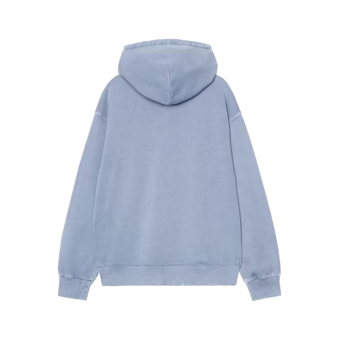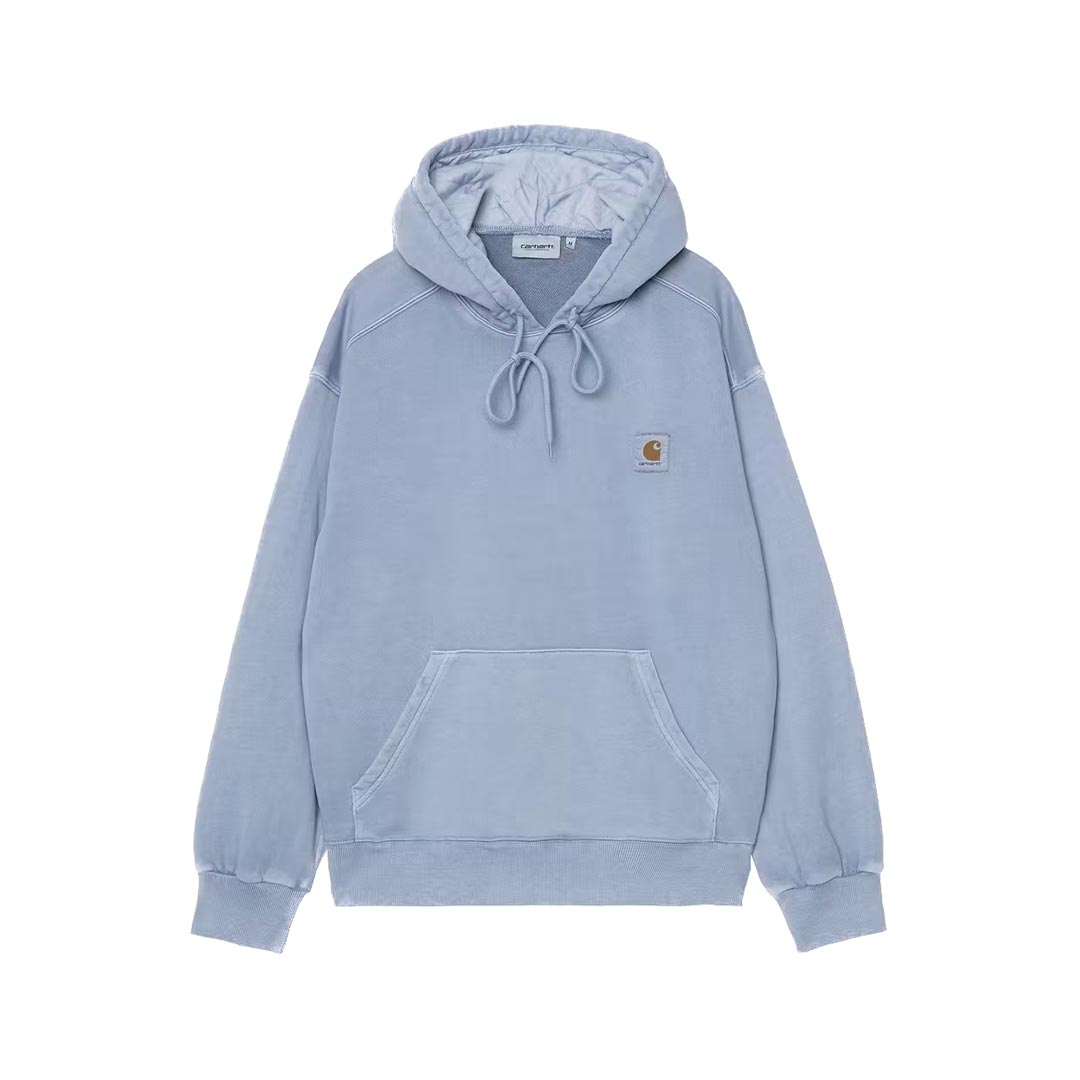 La Hooded Nelson Sweatshirt è realizzata in pesante jersey di cotone non spazzolato. La camicia è stata tinta in capo per un colore più intenso. È dotata di tasca a marsupio e cappuccio trapuntato regolabile con imbottitura. Il vistoso taglio “a palloncino” la rende più ampia e comoda, ed è contraddistinta da spalle scese e polsini a coste. Rifinitura con la classica etichetta in tessuto Carhartt WIP sul lato sinistro del petto.