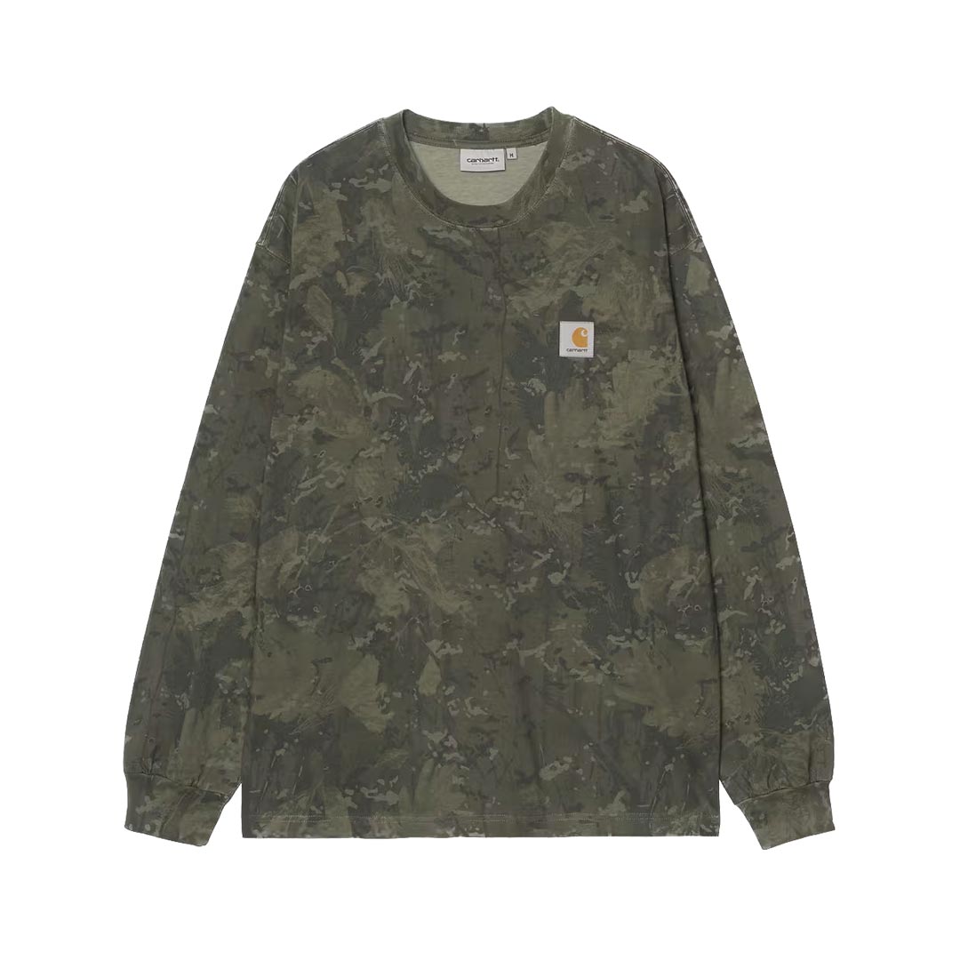 La L/S Camo Combi T-Shirt è realizzata in jersey di cotone biologico di medio peso e presenta una stampa allover.