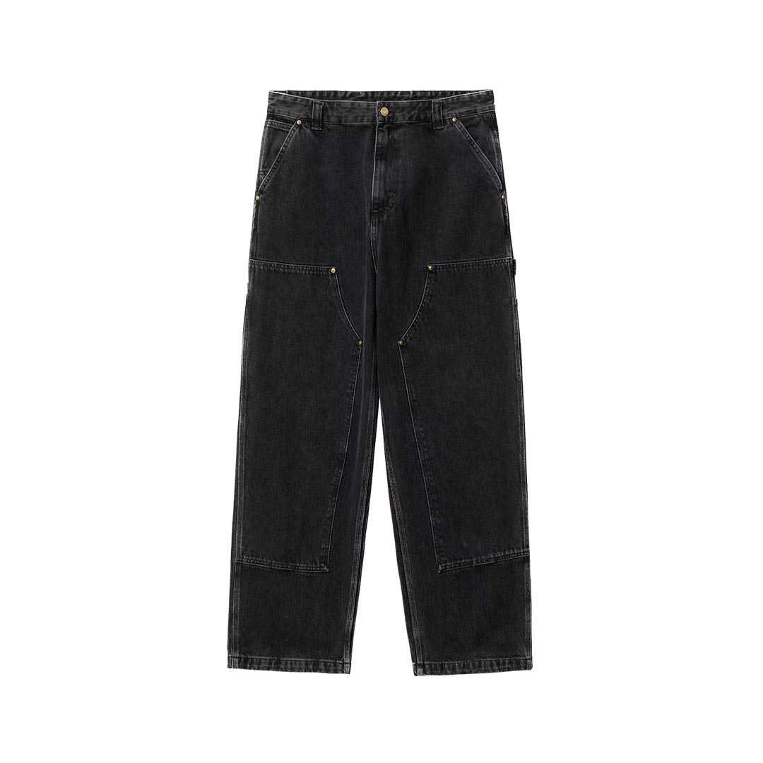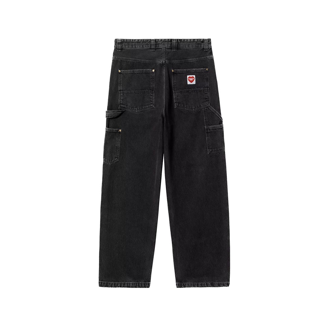 I Nash Double Knee Pant traggono ispirazione dai classici pantaloni da lavoro e sono realizzati in resistente denim Smith. I pantaloni sono inoltre caratterizzati da vestibilità ampia e vita normale. Il modello è disponibile in versione sottoposta a lavaggio per maggior morbidezza, ma senza comprometterne la robustezza, e in versione lavata con pietra pomice per un aspetto particolare. La tripla impuntura aumenta la resistenza del capo, mentre le tasche porta-attrezzi e il passante portamartello riprendono le caratteristiche funzionali del modello. L’etichetta in tessuto a forma di cuore sulla tasca posteriore riprende le origini del brand.