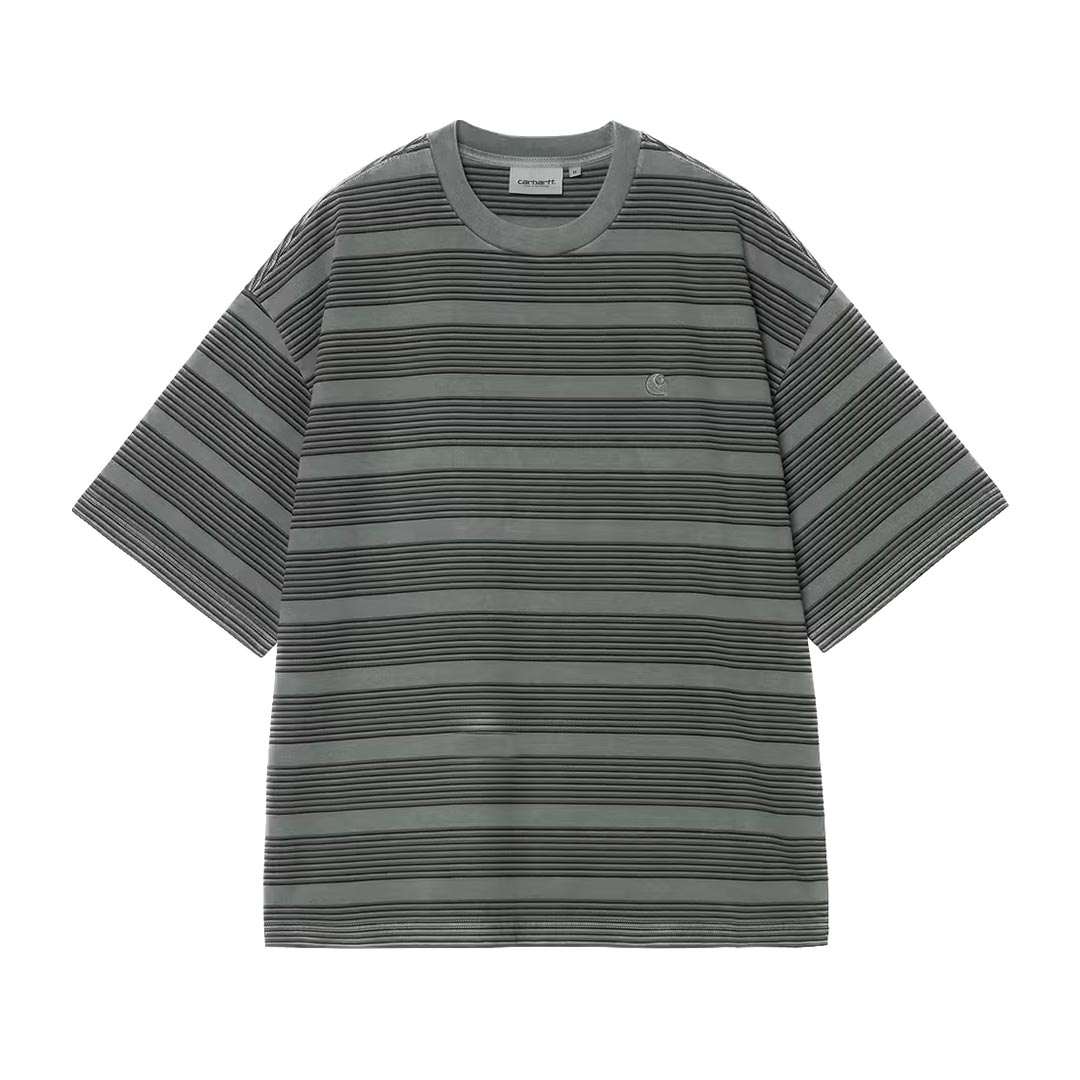 La maglietta S/S Hanson T-Shirt è caratterizzata da vestibilità ampia e realizzata in jersey di cotone a righe di medio peso, tinto in capo per maggior morbidezza e una colorazione più articolata. Sul petto campeggia il ricamo del logo “C”.