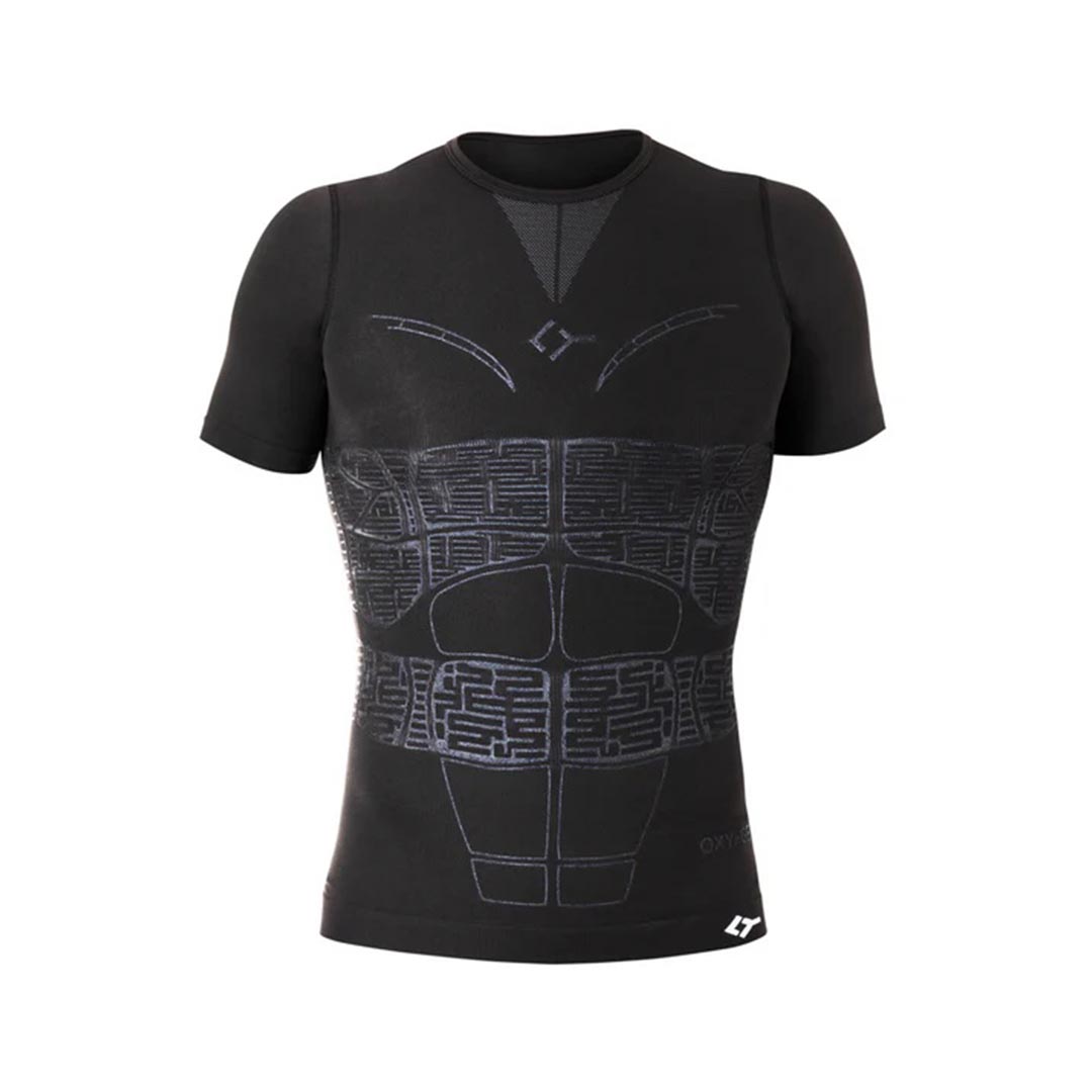 La maglia OXY-GEN è la prima maglia biomeccanica progettata per migliorare la respirazione e ottimizzare le performance sportive. Grazie a compressioni selettive generate da applicazioni siliconiche, questa maglia potenzia il tono muscolare e il lavoro diaframmatico, apportando benefici ai processi respiratori e facilitando una postura corretta.