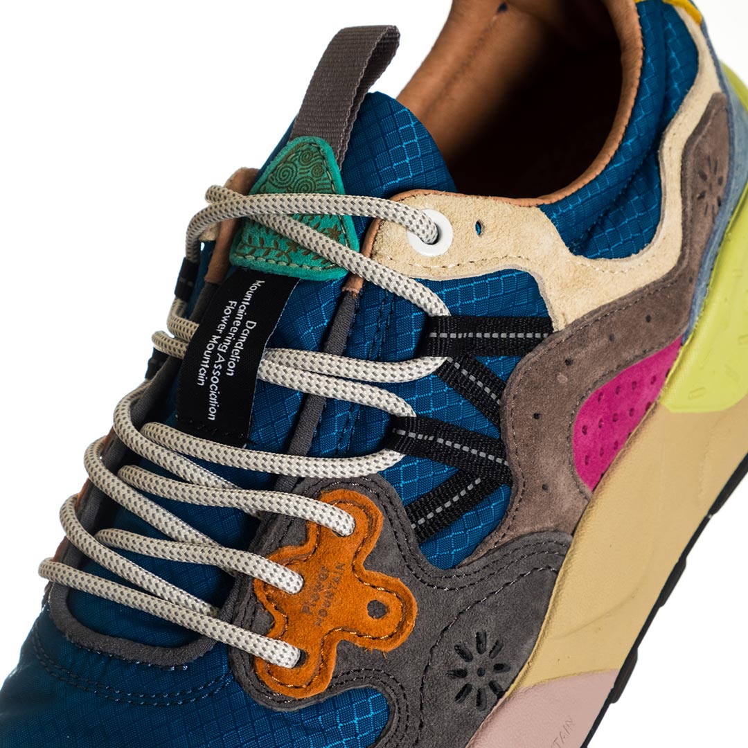 È il modello iconico del brand, che esprime l’unicità di Flower Mountain e il suo amore per la natura, dai colori, alle forme ai dettagli: elementi di design sovrapposti, linee di punti che disegnano curve morbide, lacci da trekking e occhielli in pelle. Il risultato? Una scarpa dalla calzata confortevole, perfetta per chi cerca uno stile distintivo con radici nella tradizione giapponese.