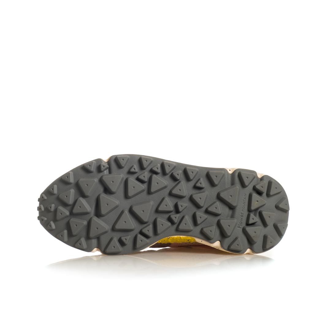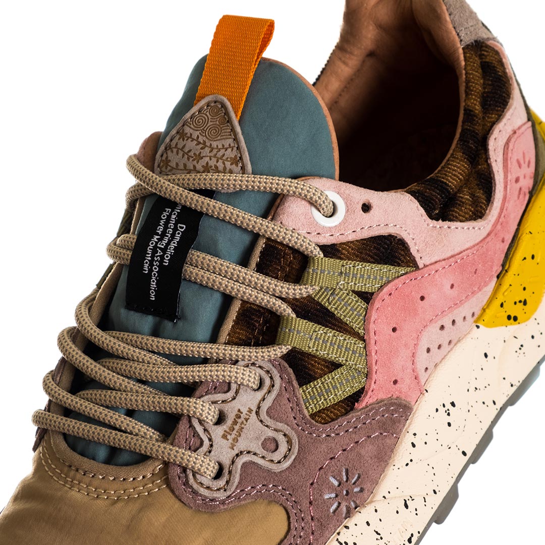 Femminilità e spirito outdoor si fondono in un design attuale, perfetto da abbinare alle mise active quanto alle longuette più glamour: Yamano è la sneaker dalla tomaia in pelle caratterizzata da inserti in tessuto tecnico e dall’iconico occhiello dalla forma sagomata, ispirata al fiore del tarassaco. Le linee evocano le calzature trekking, con suola in gomma ultra leggera e battistrada dentellato. La soletta interna in sughero naturale antibatterico assicura benessere al piede e comfort all day long.