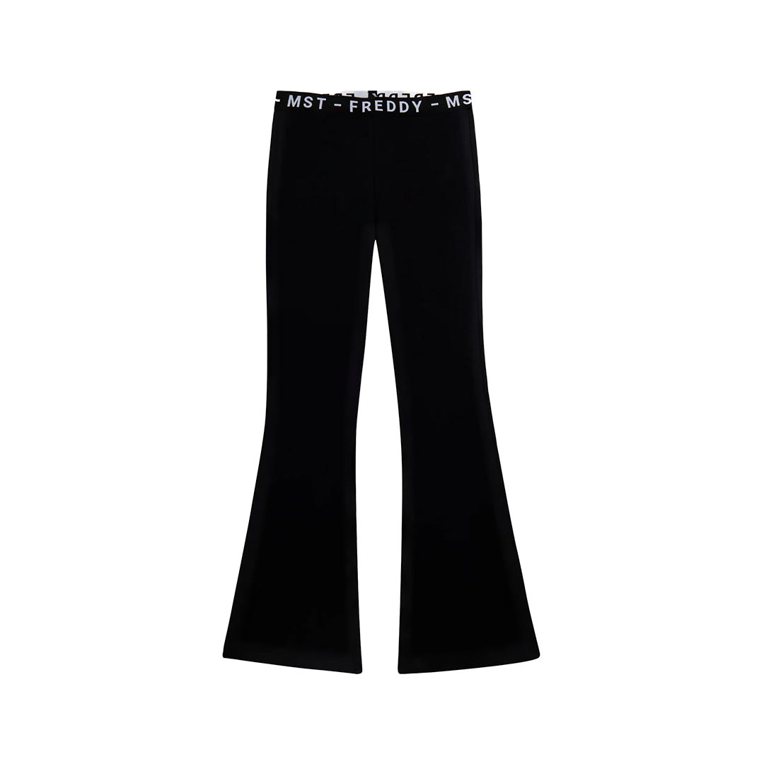 Pantaloni sportivi dal design audace, con vestibilità aderente e fondo super flare che esalta la silhouette. Realizzati in french terry elasticizzato di cotone, garantiscono comfort e libertà di movimento, mentre la vita regular è rifinita con una fascia elastica jacquard logata FREDDY MST, che aggiunge un dettaglio distintivo. Il design minimalista è pensato per un look sportivo e moderno, perfetto per chi cerca un equilibrio tra funzionalità ed eleganza.