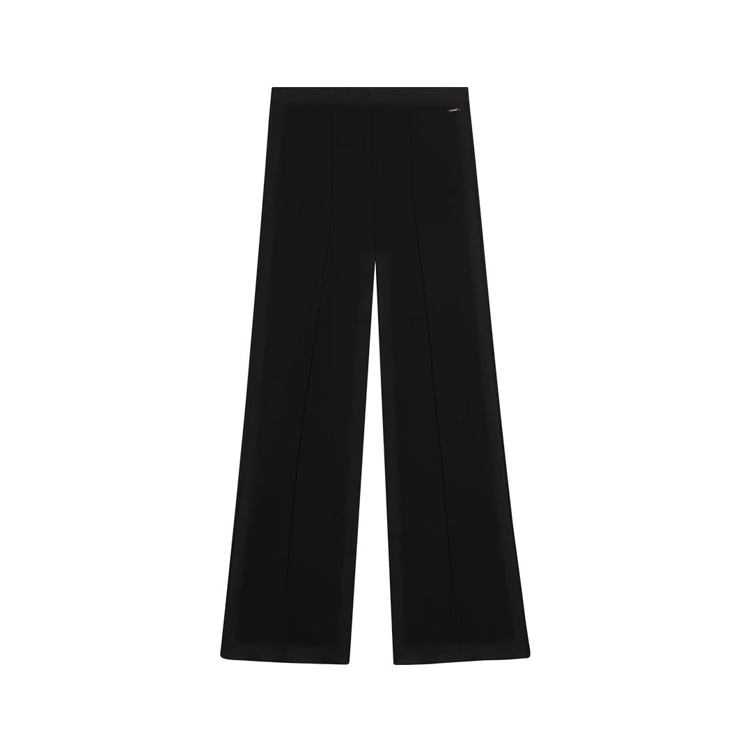 Pantaloni sportivi dalla vestibilità slim con gamba ampia, per un look femminile ma dinamico. Realizzati in confortevole jersey di cotone elasticizzato, presentano fondo dritto e una vita regular. Il dettaglio piping verticale al centro della gamba slancia la figura, mentre la placchetta dorata con logo FREDDY illumina il fianco anteriore. Senza tasche per un’estetica pulita ed essenziale.