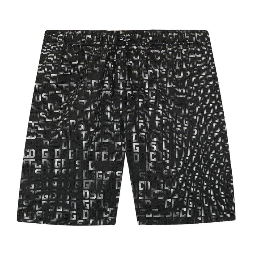 Costume da bagno lungo con stampa monogram GCDS all-over. Modello con vita elasticizzata, coulisse regolabile e slip interno in rete traspirante. Presenta due tasche laterali e una tasca posteriore con chiusura in velcro.