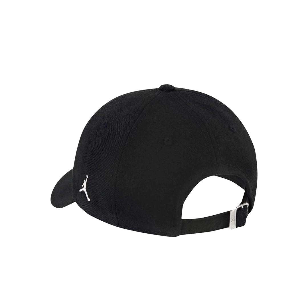 JORDAN Cappello con visiera nero per bambino e bambina dal design sportivo e pulito, realizzato in tessuto resistente e confortevole. Modello baseball a 6 pannelli con visiera curva, ideale per un look casual e streetwear. Sul frontale è presente il ricamo della sneaker Jordan in rosso e bianco, dettaglio iconico che richiama lo stile del brand. Sul lato spicca il logo Jumpman ricamato in bianco. Chiusura posteriore regolabile con cinturino e fibbia metallica per una vestibilità personalizzata.