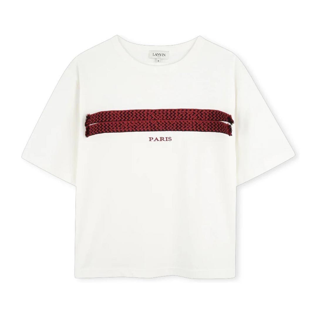t-shirt Lanvin essenziale e curata, pensata per look sobri ma distintivi. La grafica tono su tono sul petto conferisce personalità senza eccessi, mentre il tessuto leggero e il taglio regolare assicurano comfort prolungato. Un capo pensato per chi ama lo stile pulito con piccoli accenti di stile. Perfetta per completare outfit urbani con discrezione.