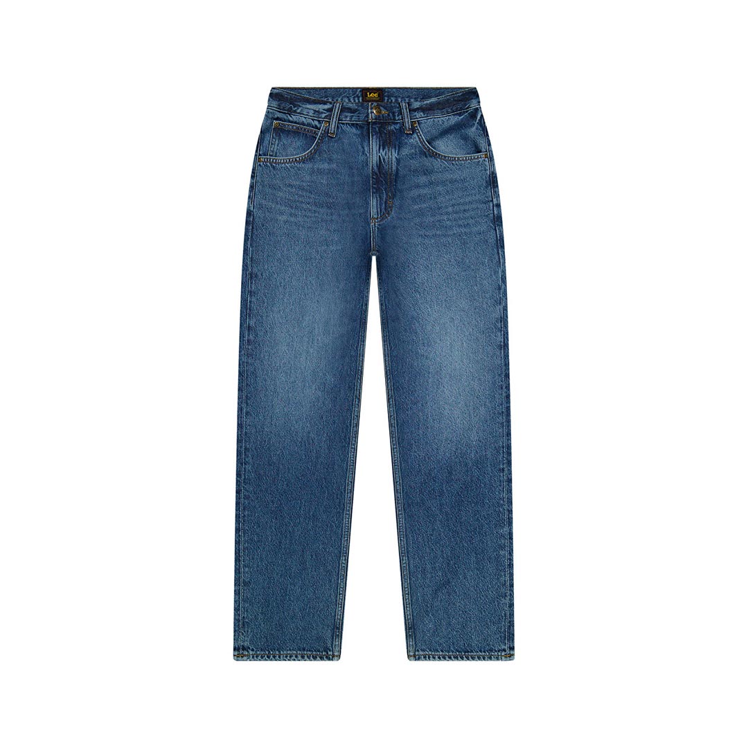 Realizzati in denim riciclato rigido da 12,75 oz con il 20% di cotone riciclato, sono resistenti e confortevoli. Rifiniti in Cruise Control, uno stonewash di un blu medio con leggere baffature sui fianchi e sovratintura sulla gamba.