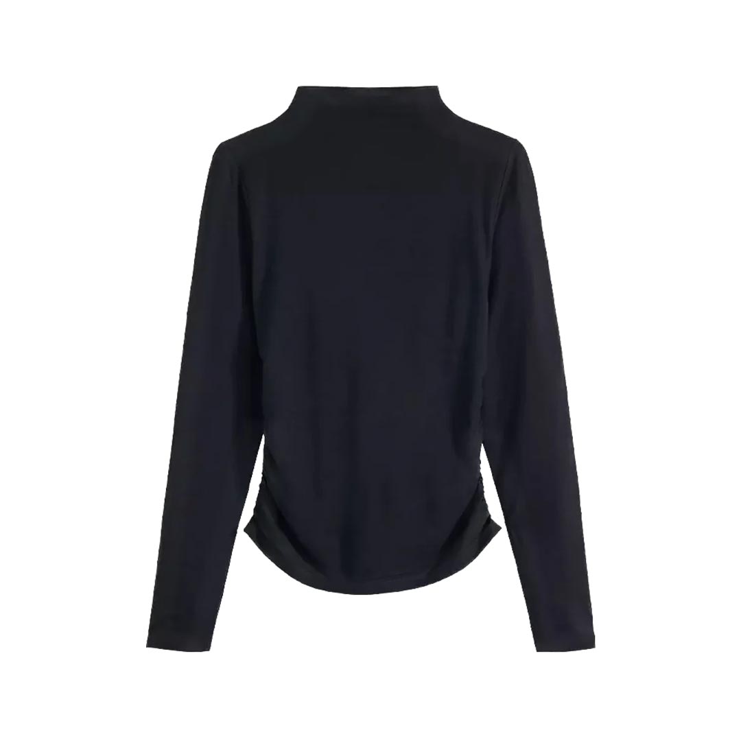 Elegante e comoda allo stesso tempo, la nostra maglia Nina impreziosisce ancora di più il tuo outfit. Presenta un collo a lupetto, un design arricciato e un fit slim che avvolge la figura.