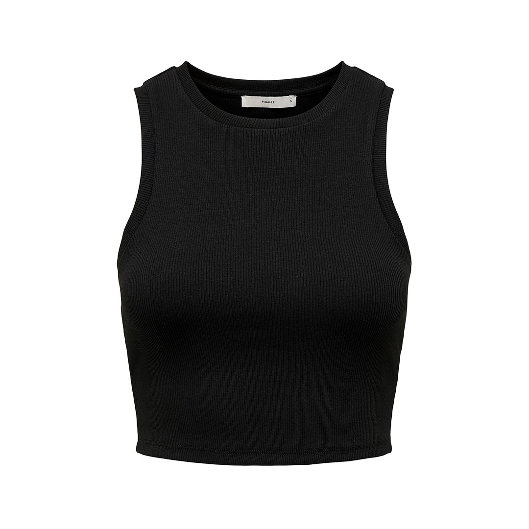 Questa canottiera cropped è il perfetto mix di stile moderno e comfort. Con il suo collo paricollo e maniche senza maniche, offre una silhouette pulita e minimalista, ideale per look freschi e dinamici.