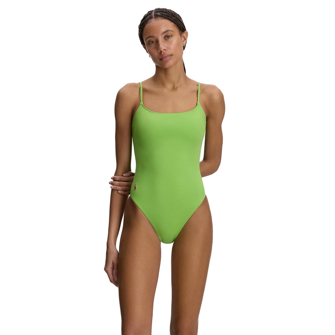 Caratterizzato da una scollatura quadrata arrotondata e da una profonda scollatura sulla schiena, questo costume intero dall’elegante silhouette è rifinito con il nostro esclusivo pony ricamato all’altezza del fianco destro.