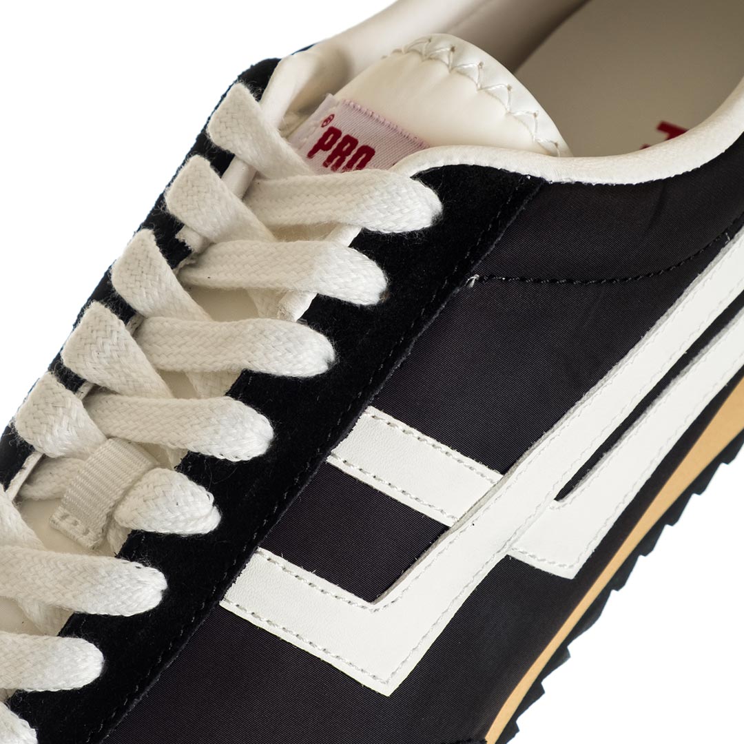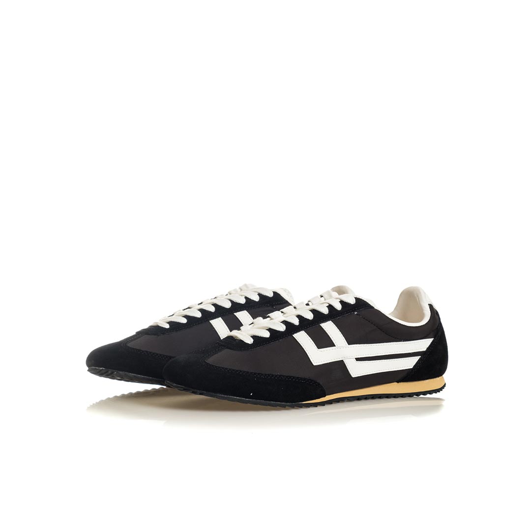Ispirata al modello T/Racer del 1977, la Racer 77 reinterpreta l’iconica scarpa da running del marchio con un tocco contemporaneo e lifestyle. Realizzata con una tomaia in nylon traspirante arricchita da inserti in pelle e camoscio, combina leggerezza, comfort e versatilità in un design minimalista e disinvolto.