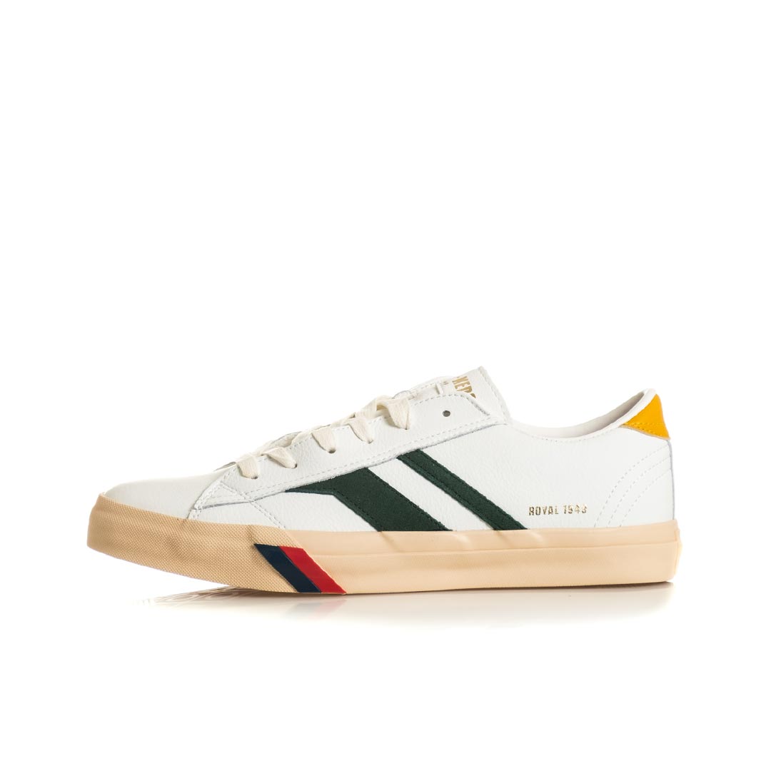 La Royal Classic trae ispirazione dall’archivio 1949® Pro-Keds. La tomaia in pelle è arricchita da inserti in camoscio. La fodera in pelle offre un comfort superiore, mentre la fascia elastica interna assicura una calzata più agevole. La suola in gomma, caratterizzata dall’iconico logo rosso e blu che prosegue su tutta la suola esterna, unisce estetica distintiva e funzionalità. Una sneaker che celebra la tradizione del marchio con un design senza tempo.