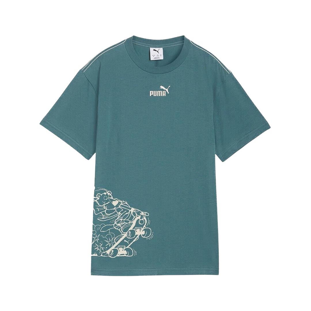 Piccolo logo n. 1 stampato in gomma sul petto; stampa grafica in gomma sul lato; girocollo a coste;