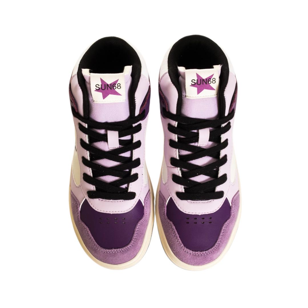SUN68 reinterpreta l’ispirazione basket anni ’90 per portare nuova energia nel guardaroba delle ragazze. La sneaker Basket Love Lady Mid ha un design accogliente ma robusto con suola in gomma effetto vintage.