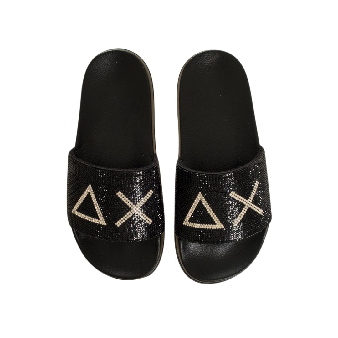 L’essenziale estivo reinterpretato secondo i codici SUN68. Queste ciabatte si distinguono per la fascia tempestata di mini strass che crea un gioco di riflessi e colori a ogni passo. Abbinale al nuovo beachwear e al cappello da baseball coordinato per un total look dall’attitudine audace, perfetto per il relax a bordo piscina o le giornate in riva al mare.