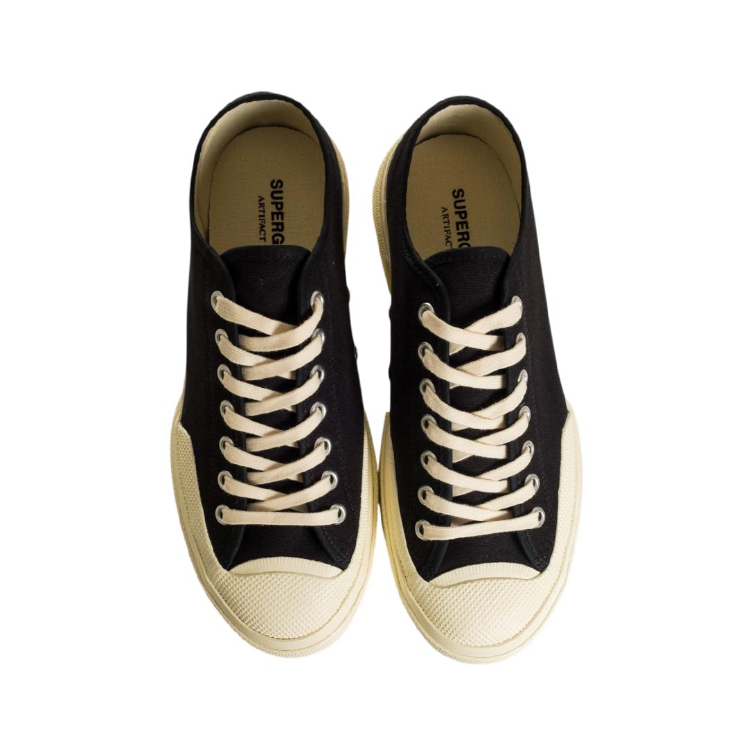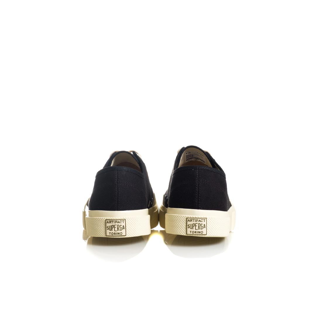 Works è la sneaker Superga Artifact realizzata in tela di cotone leggero e traspirante: lo stile workwear d’ispirazione anni ’70, ripreso dagli archivi storici del brand, dà carattere a una silhouette allacciata pulita ed essenziale, con suola a cassetta, punta leggermente squadrata e rinforzi laterali in gomma.